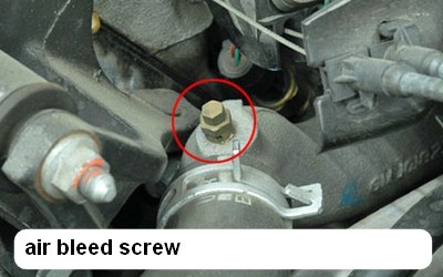 - Some cars need measures to bleed all of the air out of the system. This happens for a variety of reasons including the water ways in the engine being higher than the radiator cap. Parking the car on a slope or jacking it up to raise the radiator cap above the engine helps. If your car has a bleed nipple open it until water comes out. On a Subaru legacy there is a plastic plug on the top of the radiator near where the top hose comes in. Loosen that until water comes out. Do not overtighten the plug its easy to strip the threaad. Sometimes it is necessary to loosen a hose clip and even slide a small screw driver under the hose to let ou the air.