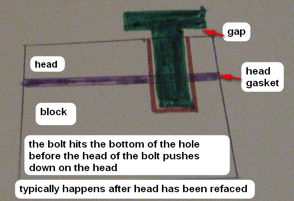 - Head gasket can blow if the head bolts hit the bottom of the hole before they are fully tight. if this happens the head of the bolt is not pushing down on the head hard enough. This typically happens after head work when the head has been planed.