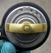 - The radiator cap has a return valve that allows water to return to the radiator from the overflow bottle. Remove the overflow hose from the radiator, attach the tester hose to the overflow pipe and pump up the pressure to the higher of 10psi or the radiator cap pressure and quickly close the tap. If there is no leak the pressure will not drop over 5 minutes.(there may be a small initial drop if the hoses swell a little or if air in the system compresses)
