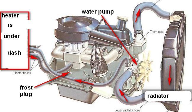 - NB Hoses can get rather stuck. To remove a hose slide a small screw driver under and parallel to the hose and gently wriggle. Then gently rotate the hose backwards and forwards while also trying to pull it off. Be particually careful and gentle with the hoses that go through the firewall and on to the heater. Its easy to damage the heater pipes when you pull them off and a very big job to get the heater radiator out and back in.
