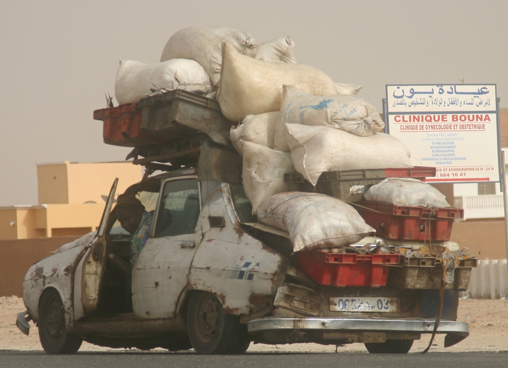 Allow the engine to cool, drive sensibly when the air temperature has dropped (early evening?), perhaps with the heater on when going up hills and it may not overheat. The hot season passes, cars uunloaded and all is ok.