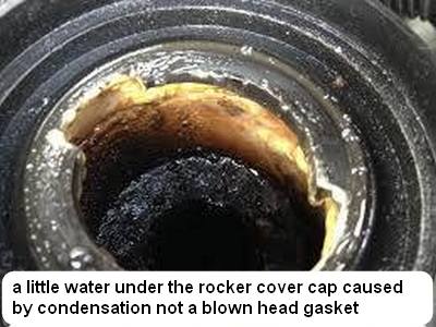 - Pull out the dipstick and remove the rocker cover cap. Look for a whitish oil and water mix which indicates a blown head gasket. A little white mix stuck to the bottom of the rocker cover cap is ok but check your engine ventilation system later.